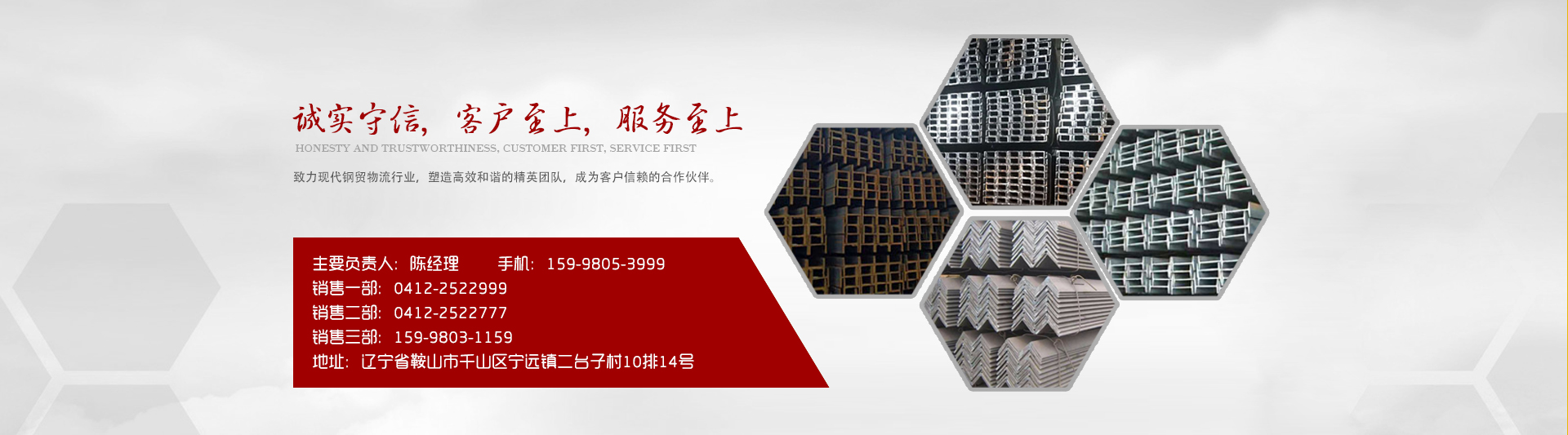 鞍山市鑫華通貿(mào)易有限公司位于鞍山二臺(tái)子鋼材市場(chǎng)10排14號(hào)。公司主要經(jīng)營(yíng):H型鋼、工字鋼、槽鋼、角鋼、板等各種鋼材。多年來(lái)在新老客戶(hù)以及各鋼廠(chǎng)的大力支持下,使得公司的業(yè)務(wù)得到飛躍發(fā)展、并與寶得、鞍鋼、津西、天柱、萊鋼、馬鋼、本鋼等鋼廠(chǎng)形成良好的戰(zhàn)略合作伙伴。我們致力于成為中國(guó)北方專(zhuān)業(yè)的鋼材統(tǒng)購(gòu)分銷(xiāo)供應(yīng)商。我公司一直遵循“不忘初心 方得始終”的企業(yè)精神和“誠(chéng)實(shí)守信,客戶(hù)至上,服務(wù)至上”的企業(yè)宗旨,致力現(xiàn)代鋼貿(mào)物流行業(yè),塑造一支和諧的精英團(tuán)隊(duì),成為客戶(hù)信賴(lài)的合作伙伴。我公司努力提高經(jīng)營(yíng)理念和改變營(yíng)銷(xiāo)方式,以實(shí)力服務(wù)市場(chǎng)、以誠(chéng)信保證客戶(hù)滿(mǎn)意、以?xún)?yōu)質(zhì)產(chǎn)品樹(shù)立信譽(yù),從而使公司不斷成長(zhǎng)壯大,鞍山鑫華通誠(chéng)邀新老客戶(hù)加強(qiáng)合作,共同發(fā)展,共同進(jìn)步,共創(chuàng)一個(gè)互惠互利的合作平臺(tái)!